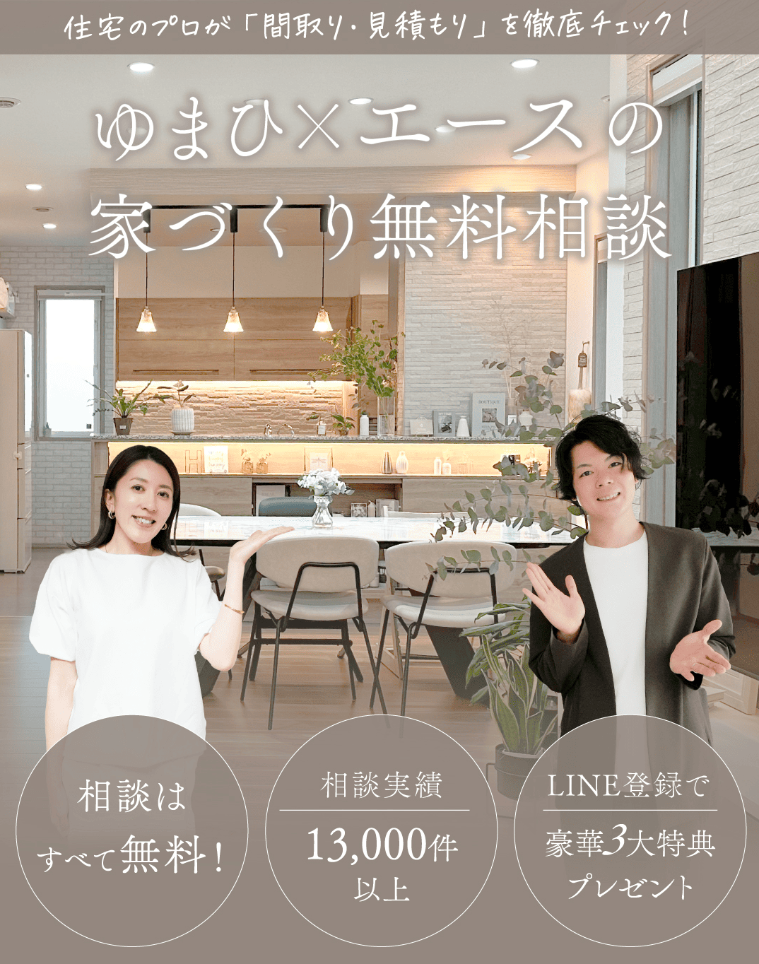 この記事では、ゆまひ×エースの家づくり無料相談の具体的なサポート内容と、LINE登録でもらえる豪華特典について詳しく解説していくね!